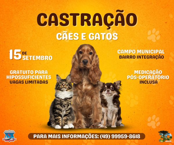 Para realizar a inscrição, visto que há uma quantidade limitada de cirurgias o interessado deverá comparecer a Assistência Social ou procurar a Secretaria de Agricultura para sanar suas dúvidas ou se preferir, entre em contato via telefone, pelo (49) 99959-8618 no período vespertino.