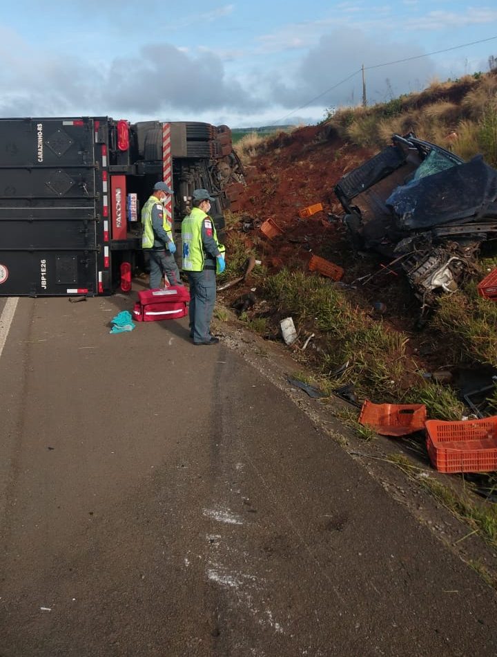 A colisão envolveu uma VW/Saveiro com placas de Brunópolis e um carreta de Carazinho-RS. O motorista da picape de 66 anos foi a óbito no local. Já o condutor do caminhão de 42 anos foi atendido com ferimentos leves.