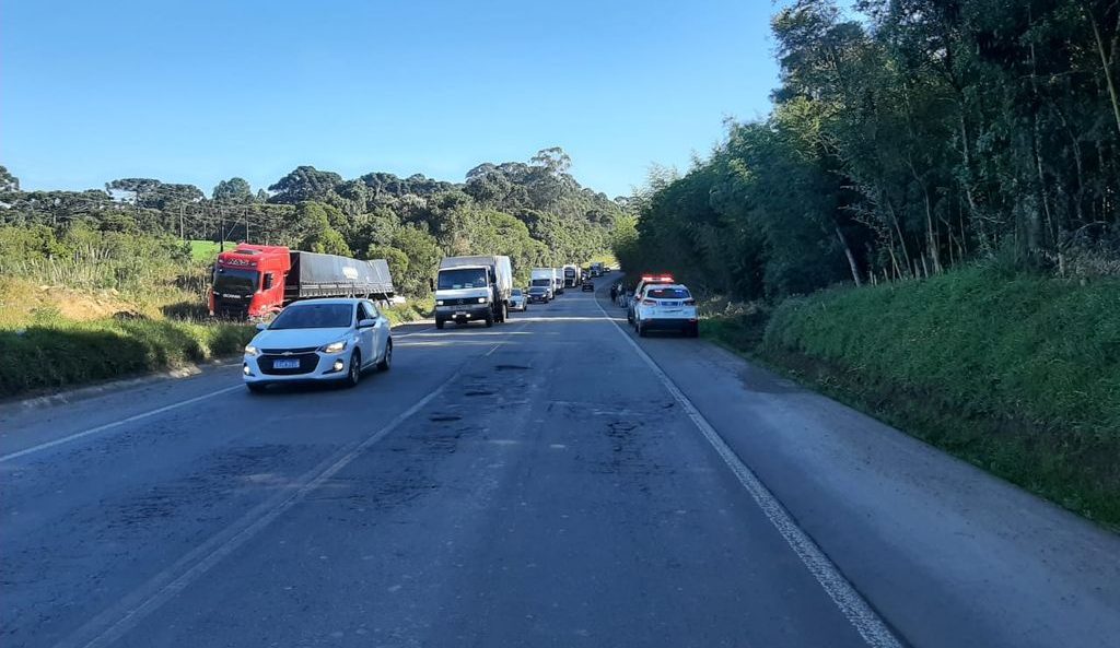 Segundo testemunhas, o motorista teria atropelado a própria companheira e fugido do local em seguida. A mulher de 39 anos foi encontrada morta na rodovia. Ele foi detido após colidir o veículo Nissan/Sentra, em uma carreta Scania, também na BR-470 no município de Curitibanos.