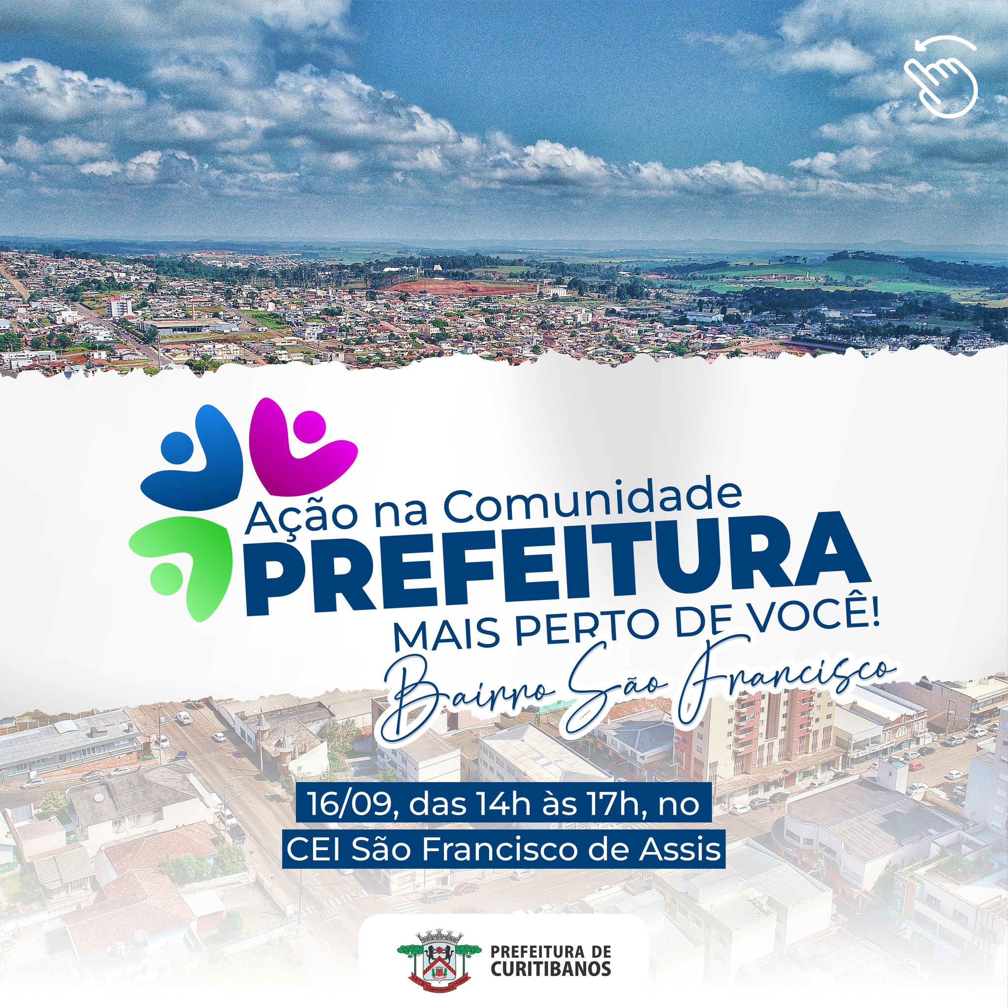 A Ação na Comunidade, “Prefeitura Mais Perto de Você”, será realizada pelo Poder executivo municipal de Curitibanos neste sábado, dia 16 de setembro.