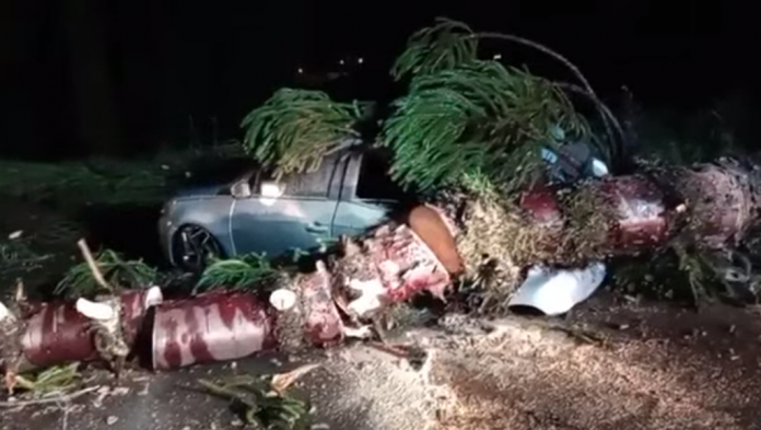 Alguns transtornos foram registrados durante uma chuva intensa com vento, pouco antes das 20 horas. Uma das principais ocorrências foi à queda de um Pinheiro, que acabou atingido um veículo, Rua João Gonçalves de Araújo, no Bairro Aparecida. Ele ficou destruído. Conforme as informações dos Bombeiros não havia ninguém dentro do carro, e ninguém ficou ferido.