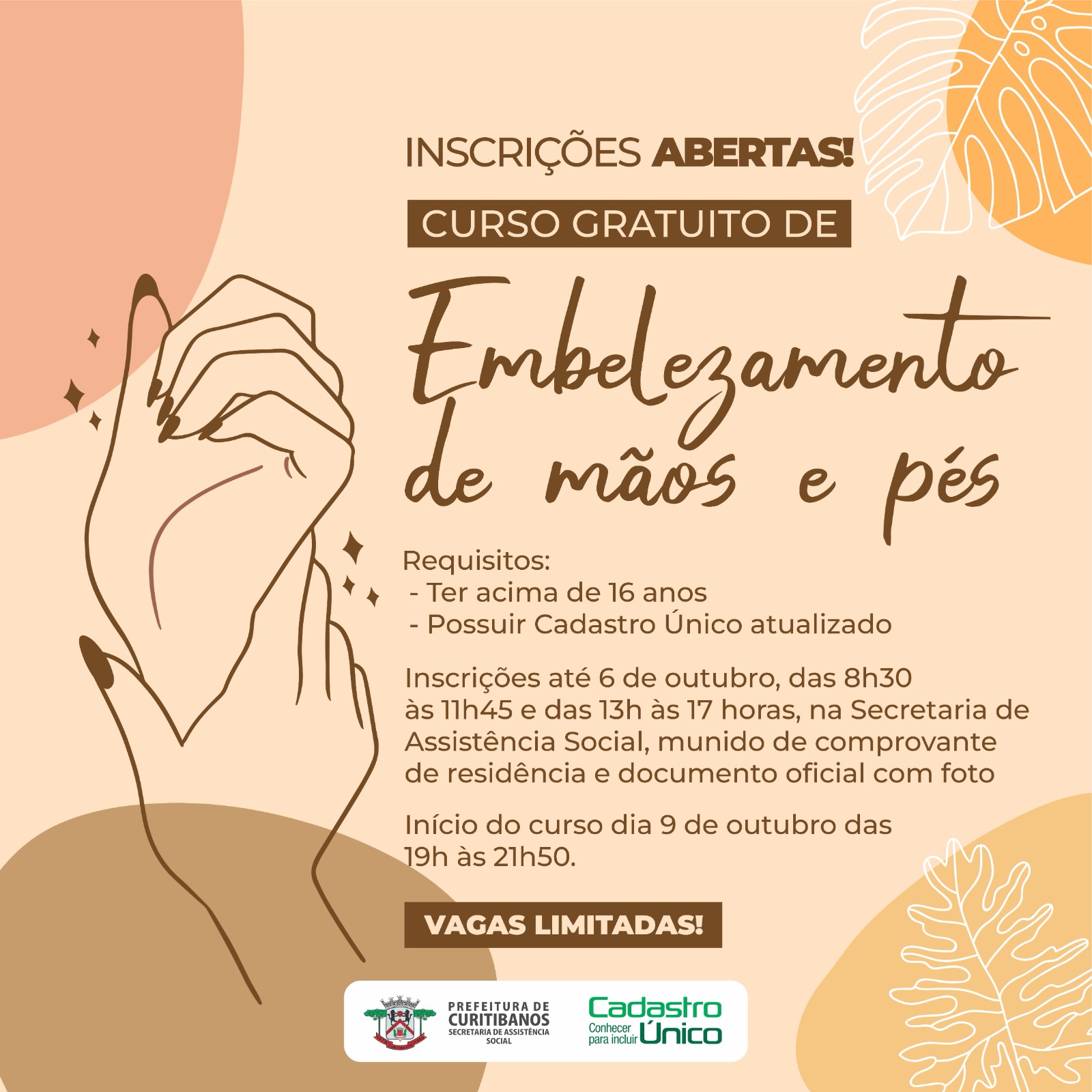 A Secretaria de Assistência Social de Curitibanos está com inscrições abertas até sexta-feira (6), para o curso gratuito de embelezamento de mãos e pés.