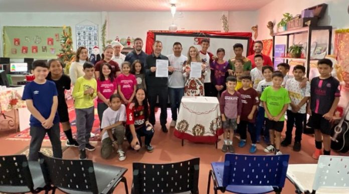 Foi assinada na terça-feira (7), de forma simbólica, a Lei n° 6.935/2023, publicada em 23 de outubro deste ano no Diário Oficial dos Municípios, que celebra a permissão de uso pelo prazo de 11 anos de um terreno para ampliação da Associação de Voluntários Herdeiros do Futuro.