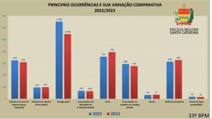 O 33° Batalhão de Polícia Militar apresentou dados referentes aos atendimentos prestados em toda a área que abrange sete municípios: Frei Rogério, Lebon Régis, Santa Cecília, Timbó Grande, Ponte Alta do Norte, São Cristóvão do Sul e Curitibanos.
