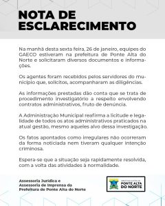 A Prefeitura de Ponte Alta do Norte publicou uma nota sobre a operação. Abaixo a integra do documento.