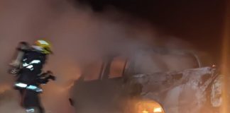 Caminhonete pega fogo após colidir contra caminhão